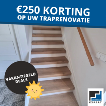 Met het vakantiegeld op zak eindelijk de trap renoveren. En met €250 korting wordt het helemaal aantrekkelijk!